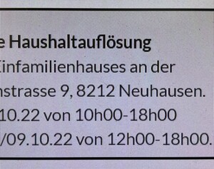 Private Haushaltauflösung eines Einfamilienhauses an der Tannenstrasse 9, 8212 N...