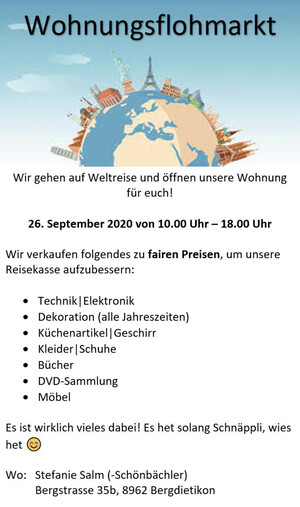 Flohmarkt bei mir zuhause 26 Sept 9.00-16.00 Uhr (Verschiebedatum 3 Okt)