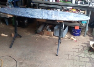 1 Tischplatte aus gnais azul bahia Unikat Form oval Grösse 1 .90cm lang und 60 c...