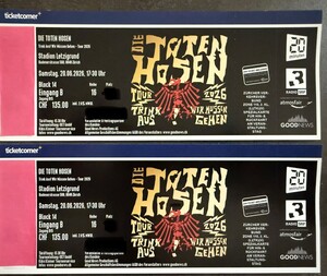 2 Sitzplätze Block 14 Die Toten Hosen, 20.06.2026 Zürich