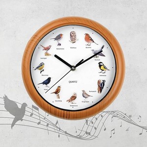 Schweizer Vögel - Wanduhr mit 12 Vögel in Braun oder Silber