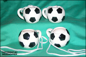 18 Fussball-Stamperl aus Keramik mit langer Halskordel