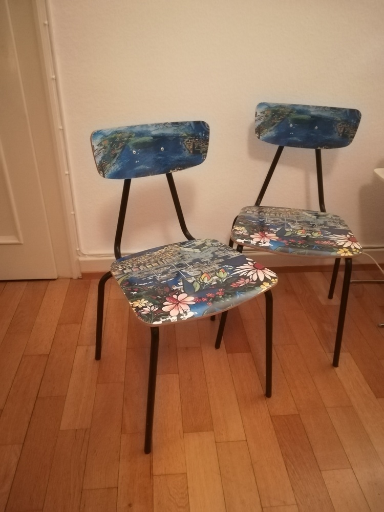 2 Stühle mit Stockholm-Motiv