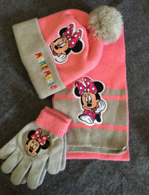 Das erste ist ein Braun/Graues mit Mickymouse motiven drauf.