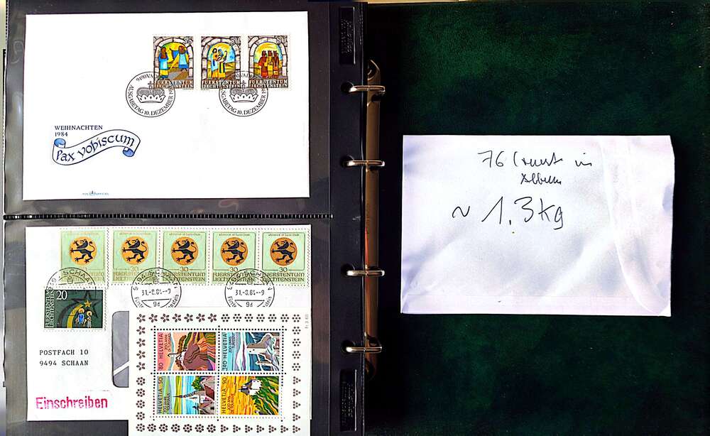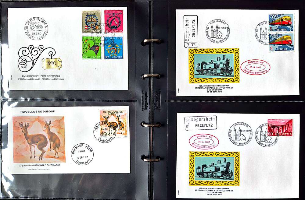 76 Couverts mit Briefmarken Stempel aus CH und ganze Welt
