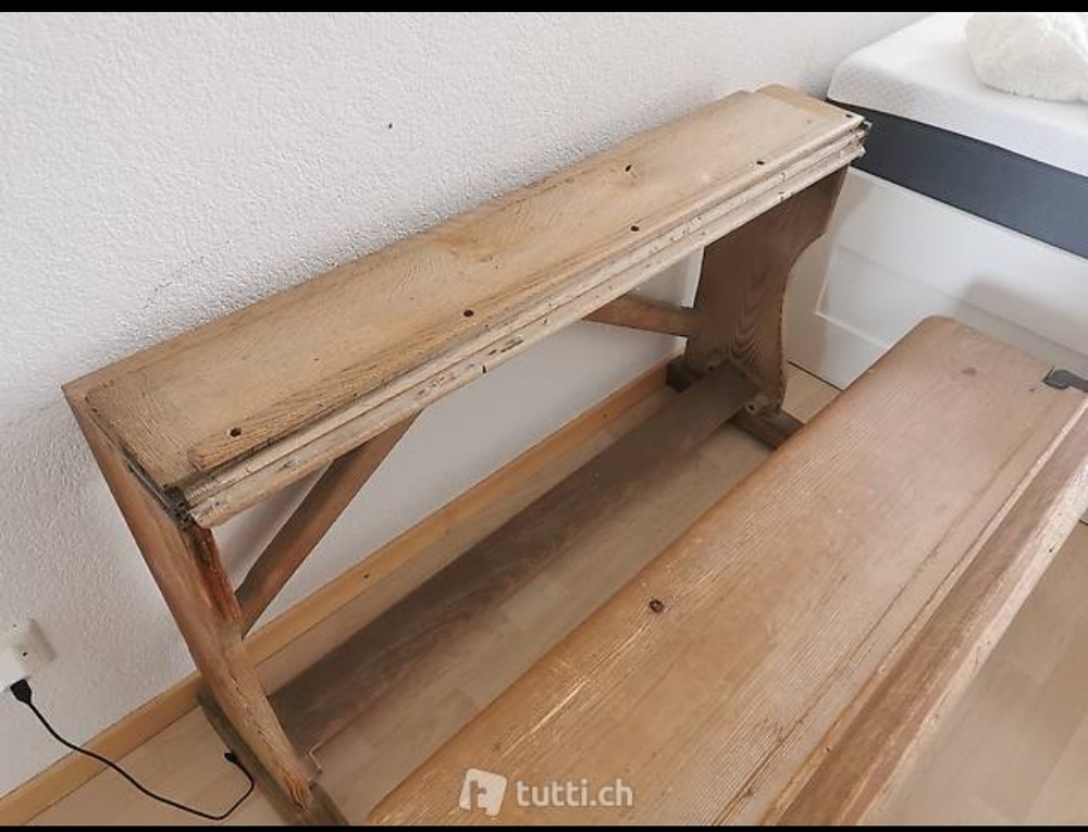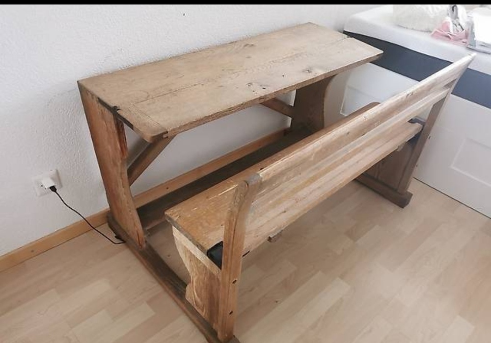 Wunderschöne antike Schulbank zu verkaufen. Massivholz, klappbare Schreib-und Sitzfläche. Leichte Verbrauchsspuren vorhanden. Muss abgeholt werden.