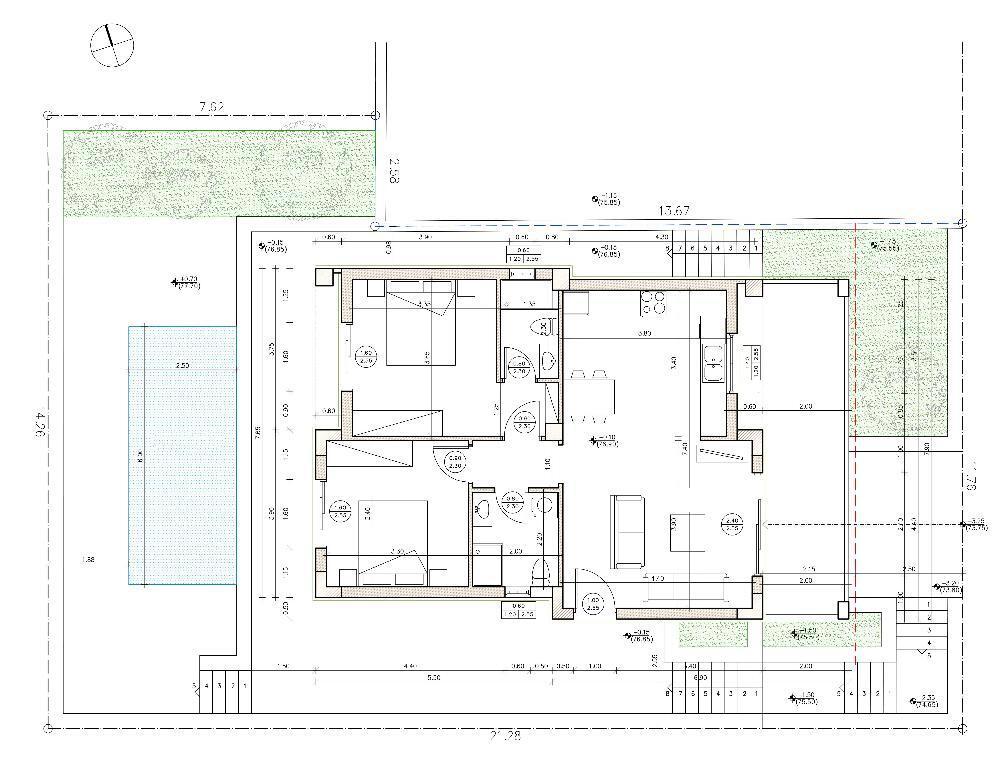 Es wird der Energieeffizienzklasse A entsprechen, es wird Aluminiumrahmen mit Fliegengittern und Doppelverglasung, geflieste Böden, Einbauschränke und einen 200-Liter-Warmwasserbereiter mit Solarpanel haben. Die Klimatisierung erfolgt mit einer Split-Luft-Wärmepumpe in jedem Raum.