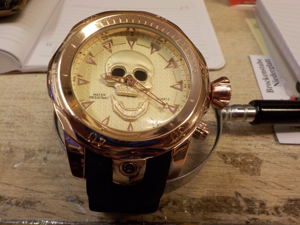 Durchmesser ca. 50cm / Uhrenkopfdicke ca. 2cm / Gewicht ca. 160gr. / für Sammler oder Fan von Totenköpfen ist diese Uhr ein wahrer Hit / Made in China / Jiang Yuans / mit der Nr. 1660 / neu ungetragen