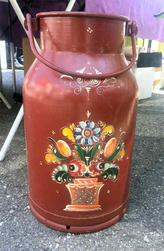Bemalte Milchkanne - ca. 40 cm, rot, handbemalt
