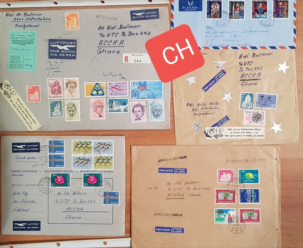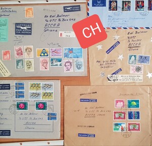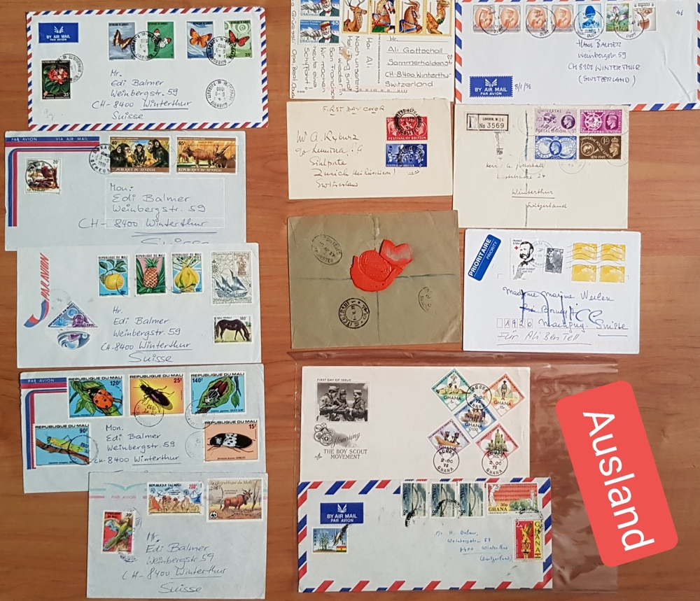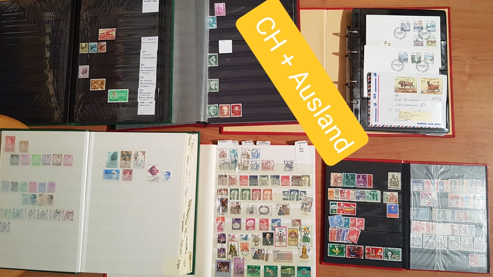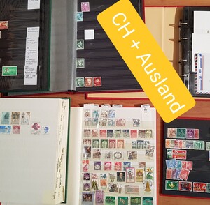 Diverse Briefmarken CH / Ausland auf Couverts und in diveresen Alben