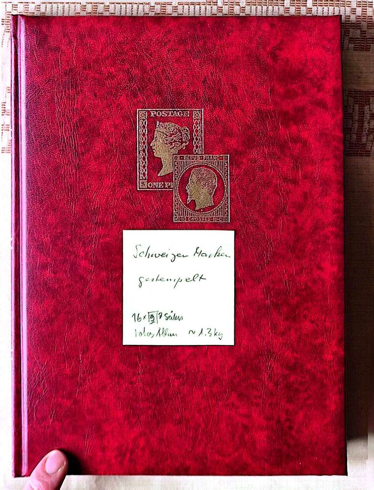 CH Marken gestempelt im WeinRoten Album: 32 Seiten weiss a 9 Zeilen - 1.3kg