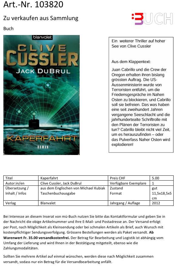 Clive Cussler, Jack DuBrul; Kaperfahrt