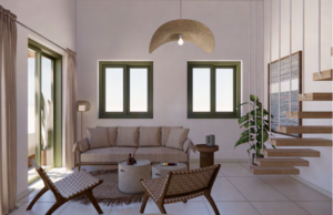 Eingebettet auf einem 3.500 m² großen Grundstück mit sanftem Hang bietet diese aus 7 Villen bestehende Anlage einen ruhigen Rückzugsort mit atemberaubender Aussicht auf das Meer und endlose Reihen alter Olivenbäume, die sich so weit erstrecken, wie das Auge reicht. Jedes Haus ist strategisch positioniert, um die Schönheit der Umgebung einzufangen und sicherzustellen, dass jeder hier verbrachte Moment geradezu magisch ist. Jede Villa wurde unter Berücksichtigung der Privatsphäre entworfen und verfügt über einen privaten Pool, einen Garten und einen Parkplatz. Die Villen verfügen über 2 bis 3 Schlafzimmer, wobei die meisten davon ein Zwischengeschoss für zusätzlichen Platz haben. Die Anlage fügt sich nahtlos in den Charme des malerischen Dorfes Kyrianna ein und bietet gleichzeitig absolute Privatsphäre.