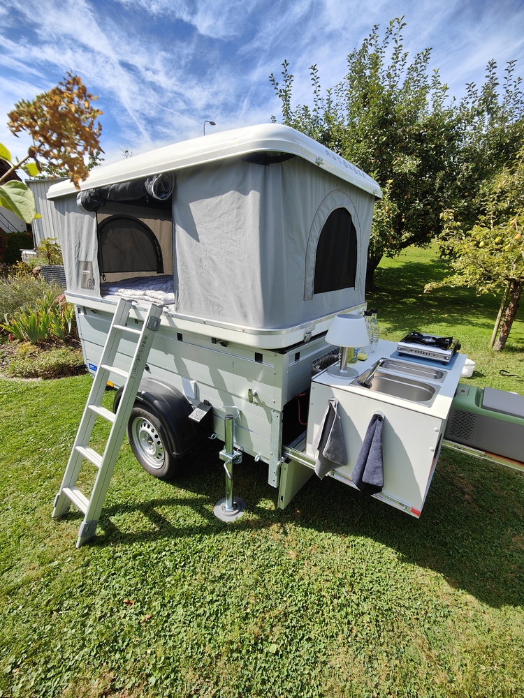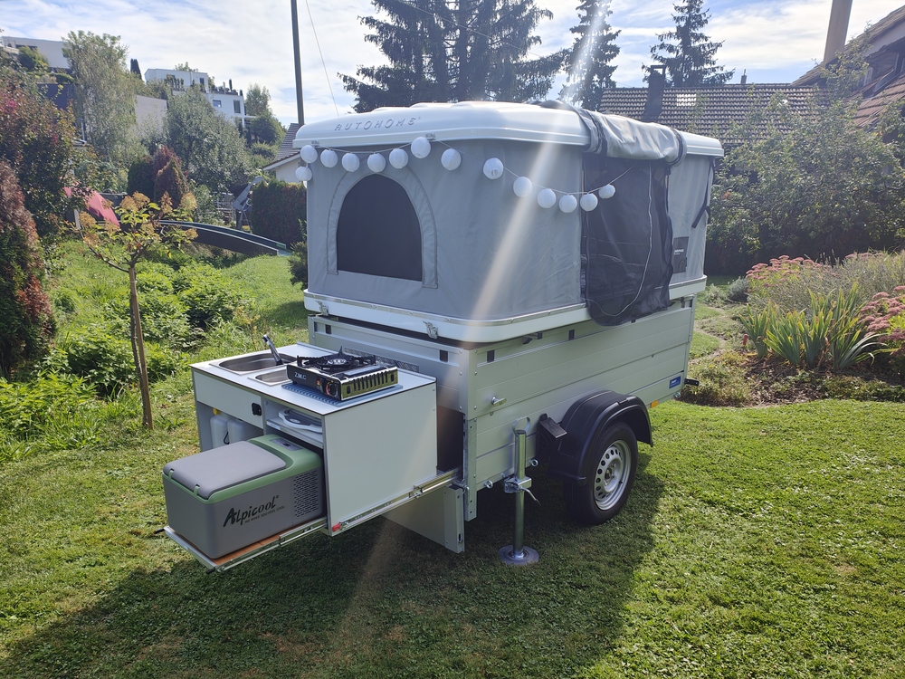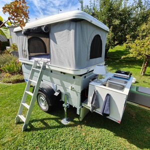 Dachzelt mit Anhänger zu vermieten.