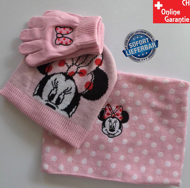 +++ Dieses Minnie Maus Winter Set besteht aus einer Mütze, Handschuhen und einem Schal