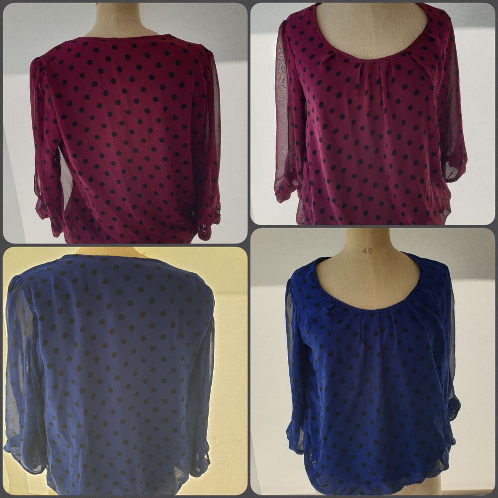 3/4 Arm Bluse in weinrot und blau gepunktet je 6.-