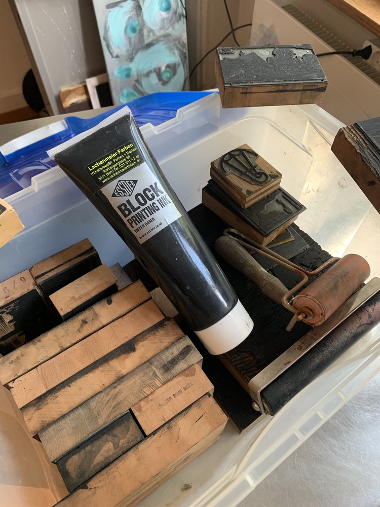 Alte Baslermotive Druckplatten. Mit Farbe und Roller