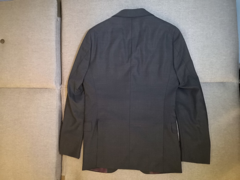 Schnitt: leicht tailliert, leichte Schulterwattierung, seitliche Rückenschlitze