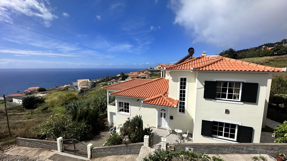 Meerblick 3 Zimmer-Wohnung an Langzeitmieter (mindestens 1 Jahr) zu vermieten in Zweifamilienhaus auf Madeira in Estreito da Calheta. Die 150 m2 grosse Wohnung verfügt über eine 20 m2 grosse überdachte Terrasse mit atemberaubendem Blick auf den Atlantik. Hier schöpft man Kraft, tankt Energie und lässt einfach die Seele baumeln.