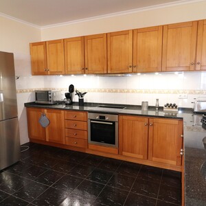Das schöne grosse Wohnzimmer mit Sicht aufs Meer lädt zum Verweilen ein. Die grosse Kochzeile wurde mit Echtholz und einer Granitabdeckung ausgestattet. Die geräumige Wohnküche ist voll ausgerüstet mit grossem Kühlschrank, Induktionskochherd mit Backofen, Mikrowelle und vieles mehr. In der Küche befindet sich ein separater Raum mit Waschmaschine und Geschirrspüler. Die Wohnung hat 2 Schlafzimmer, eines mit direktem Zugang zum Badezimmer.