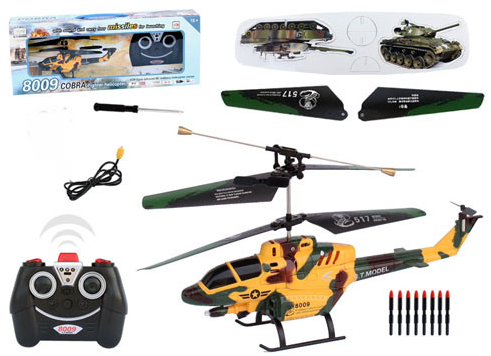 Verriegeln und Laden... Der Kampf RC Cobra 8009 ist einsatzbereit (Ready-to-Go!) zu Hause oder im Büro. Basierend auf dem mächtigen Cobra Gunship wird dieser 3-Kanal-RC-Helikopter von einem kleinen, aber leistungsstarken Akkupack angetrieben!