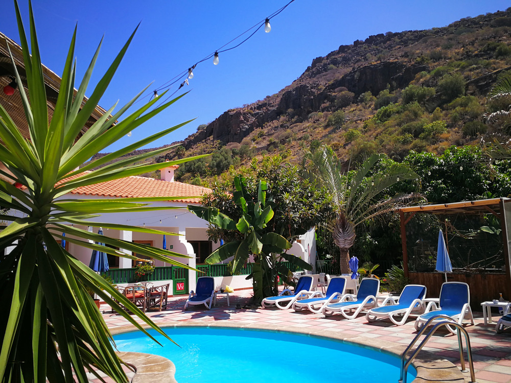 Nur ein paar Autominuten vom Dünenstrand von Maspalomas oder Playa del Ingles entfernt liegt unsere Idyllische Finca mit familiärem Charakter im Süden Gran Canarias und bietet Dir, die am Beginn des Tales Ayagaures und inmitten einer Obstplantage gelegene Finca, absolute Ruhe und Entspannung.