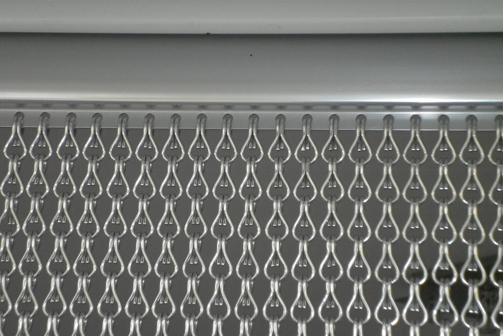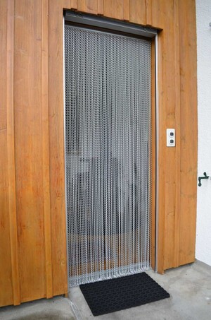 Südländischer Vorhang aus Aluminiumketten, silbern eloxiert (Kriska aus Spanien, die Originalen).