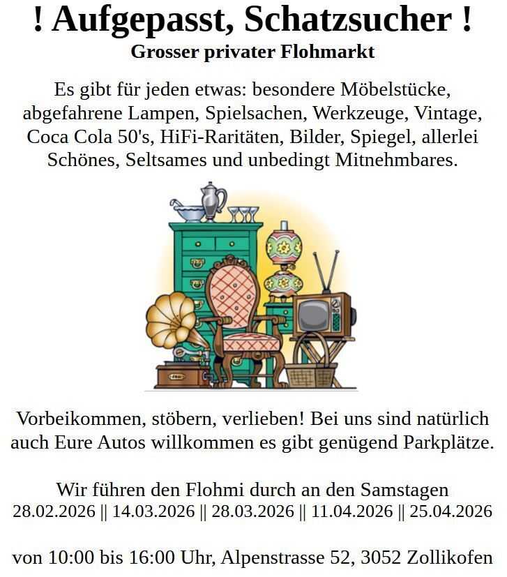Inserat merkenAufgepasst, Schatzsucher ! Grosser privater Flohmarkt