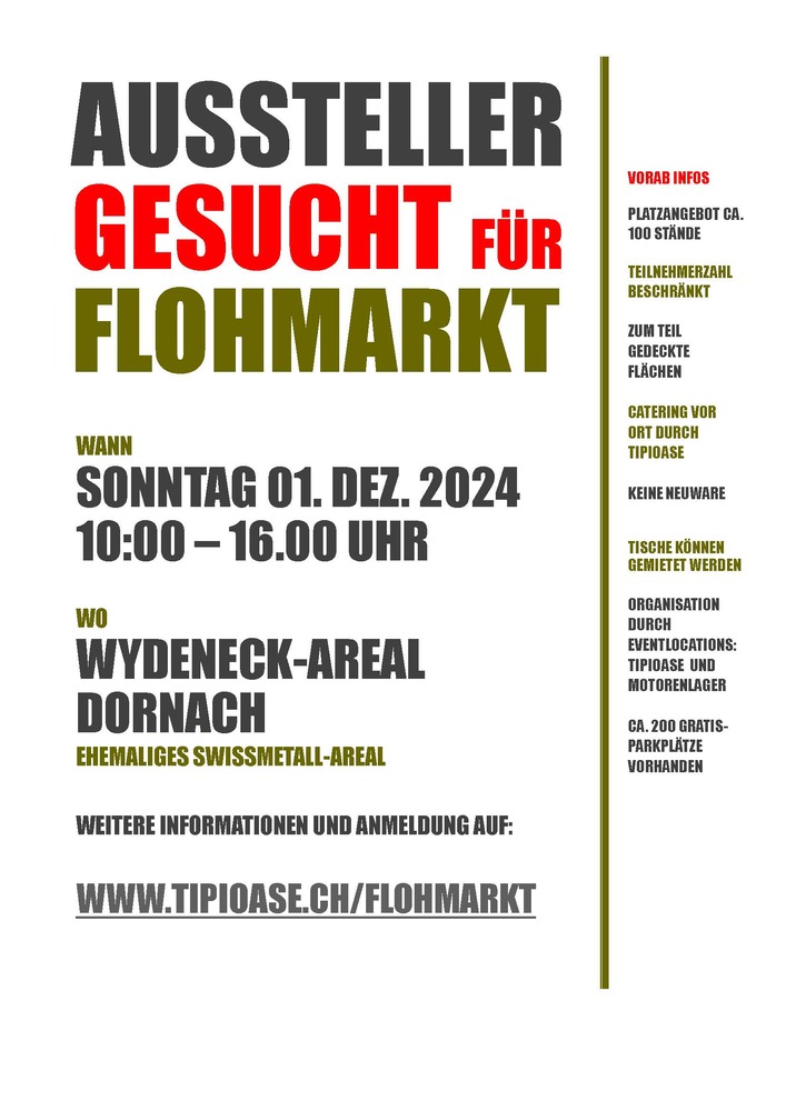 Flohmarkt So. 01.12.2024 Dornach, Wydeneck-Areal