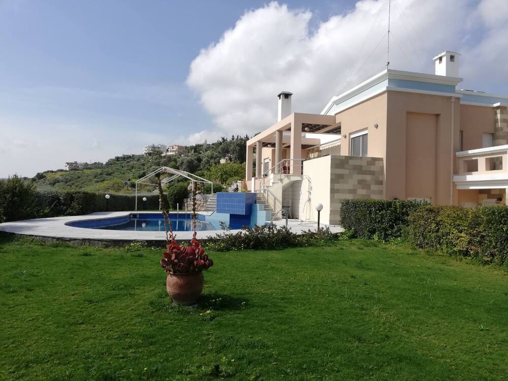 Kreta, Heraklion, Voutes: Luxusvilla zum Verkauf, in ausgezeichnetem Zustand, insgesamt 827 m² groß, auf einem Grundstück von 3.000 m². Sie besteht aus 2 Wohnungen und 1 Gästehaus. Die Hauptwohnung ist 272 m² groß und verfügt über 5 Schlafzimmer, 2 Badezimmer, 3 Wohnzimmer, Küche und Abstellraum. Die zweite Wohnung ist 170 m² groß und verfügt über 3 Schlafzimmer und 2 Badezimmer sowie eine Küche. Das Gästehaus ist 27 m² groß und verfügt über 1 Schlafzimmer, Küche und Badezimmer. Es gibt Gas-Fußbodenheizung, Kamin, Klimaanlage, Solarwarmwasserbereiter, Lagerräume, Innenhof, Terrassen, halboffene Bereiche, Garten, Schwimmbad 80 m², Grill, Holzofen, bequeme Parkplätze, Keller, uneingeschränkte Aussicht.