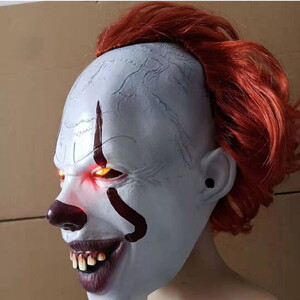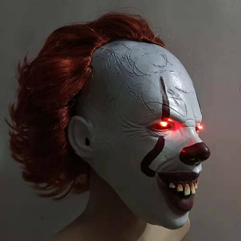 Grinsende Grusel Clown Maske LED Rote Augen Horror Halloween Fasnacht