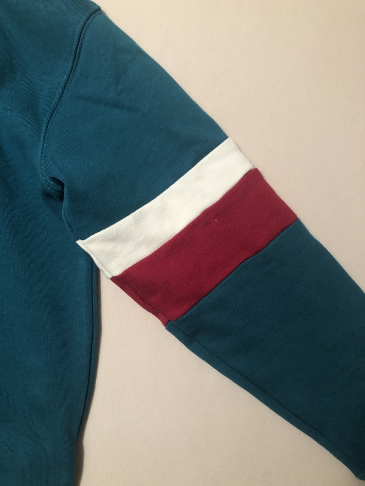 schöner grüner Pullover mit Streifen an Ärmel; Versandkosten sind nicht im Preis mit inbegriffen