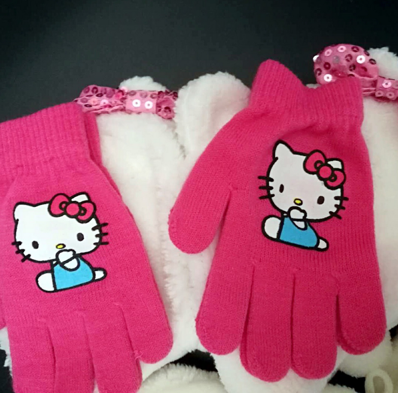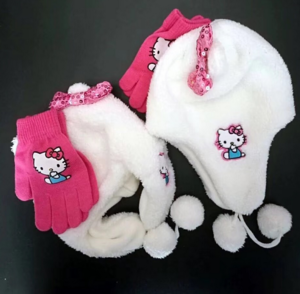 Hello Kitty Hellokitty Katze HK Winter Set Kappe Mütze Cap Beanie Handschuhe