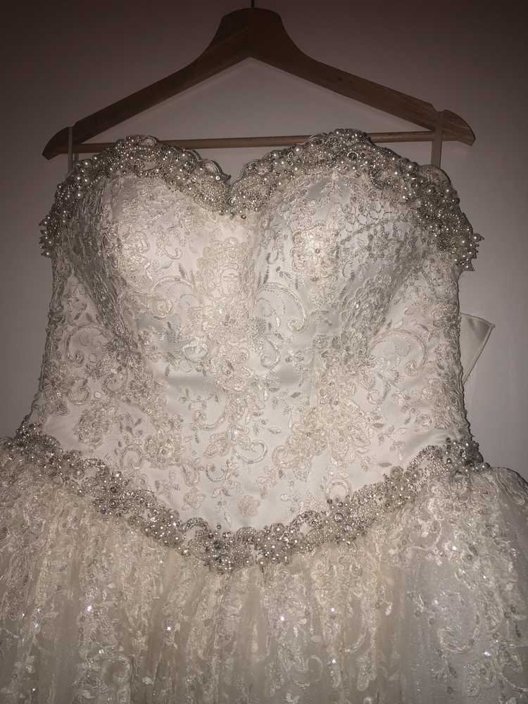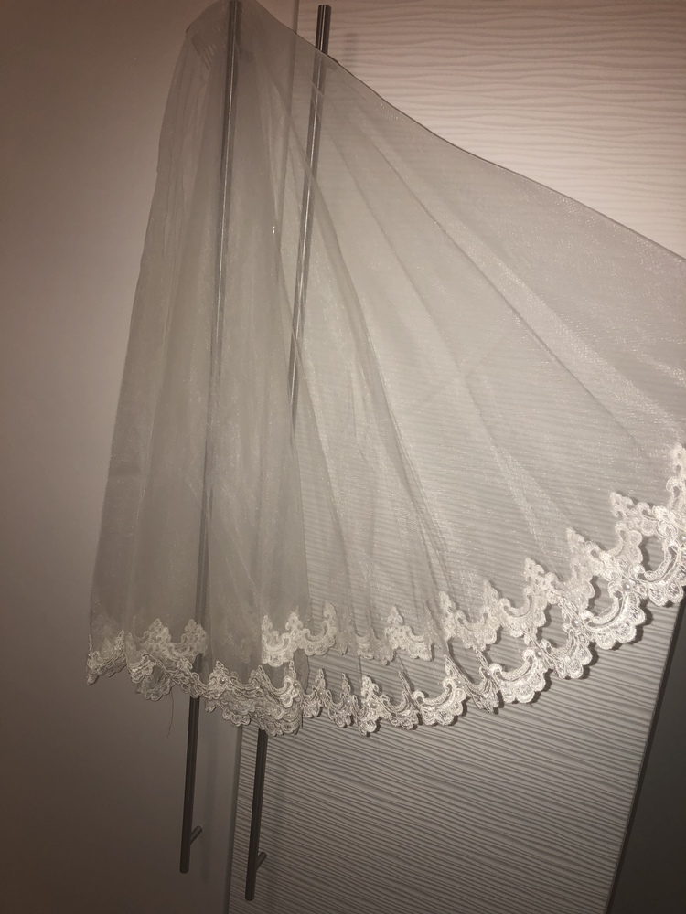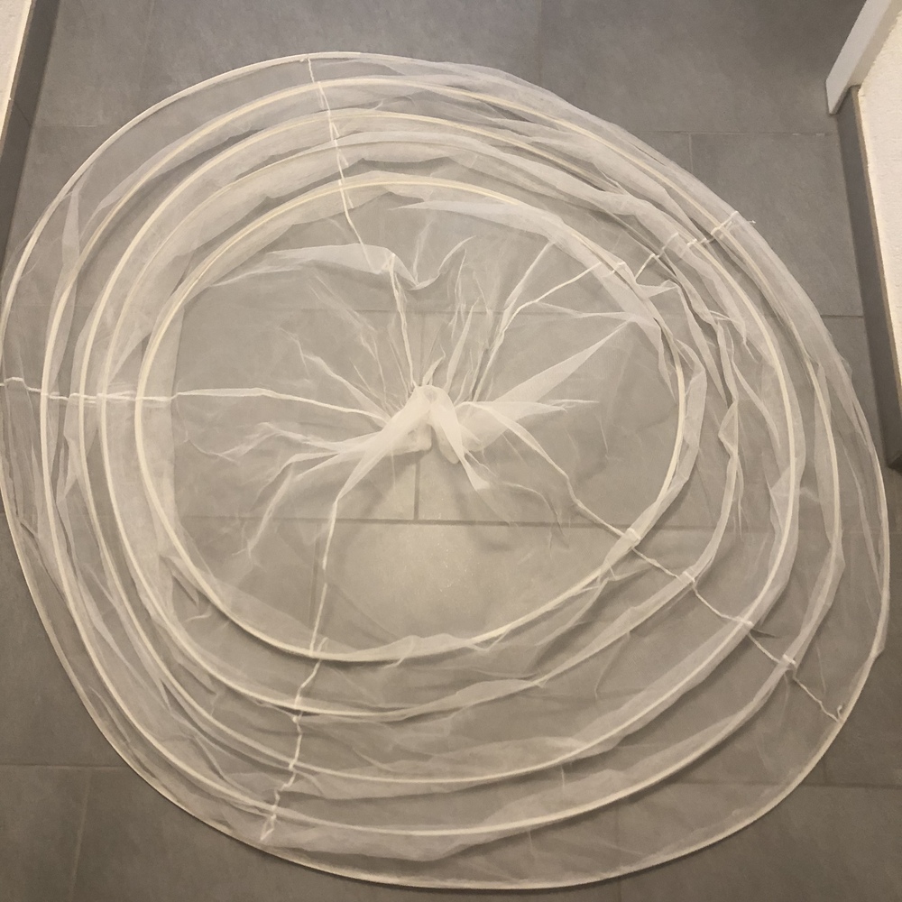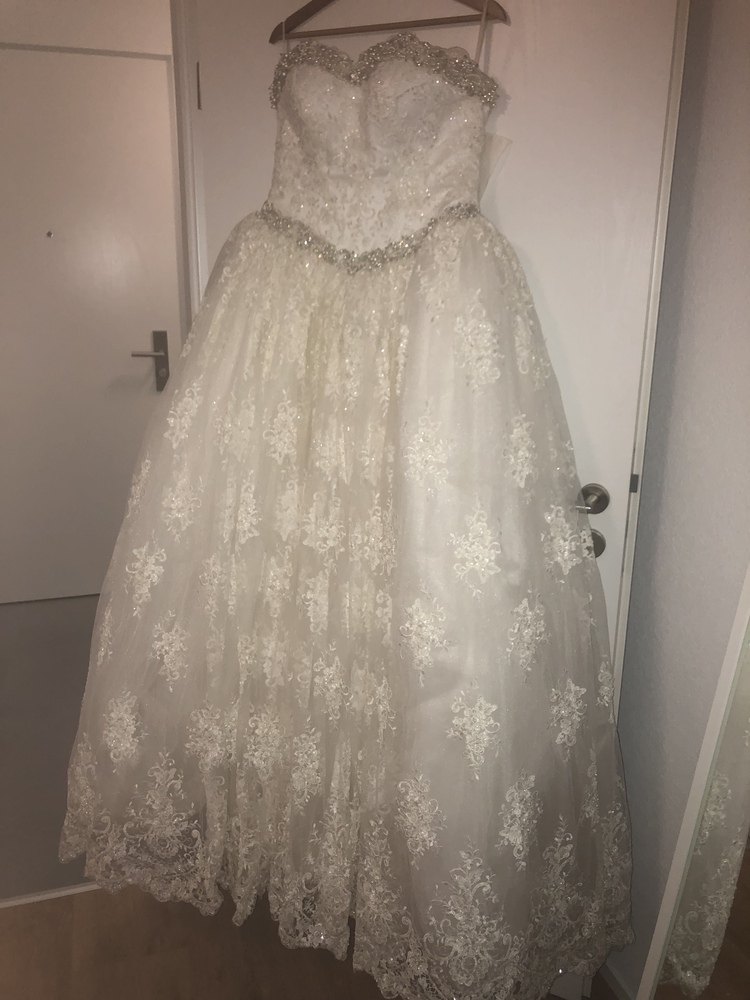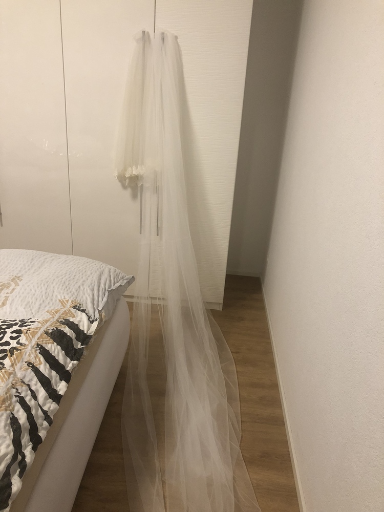 inkl. Reifenrock, Spitzenhandschuhe und 2Stk. Brautschleier lang und kurz.