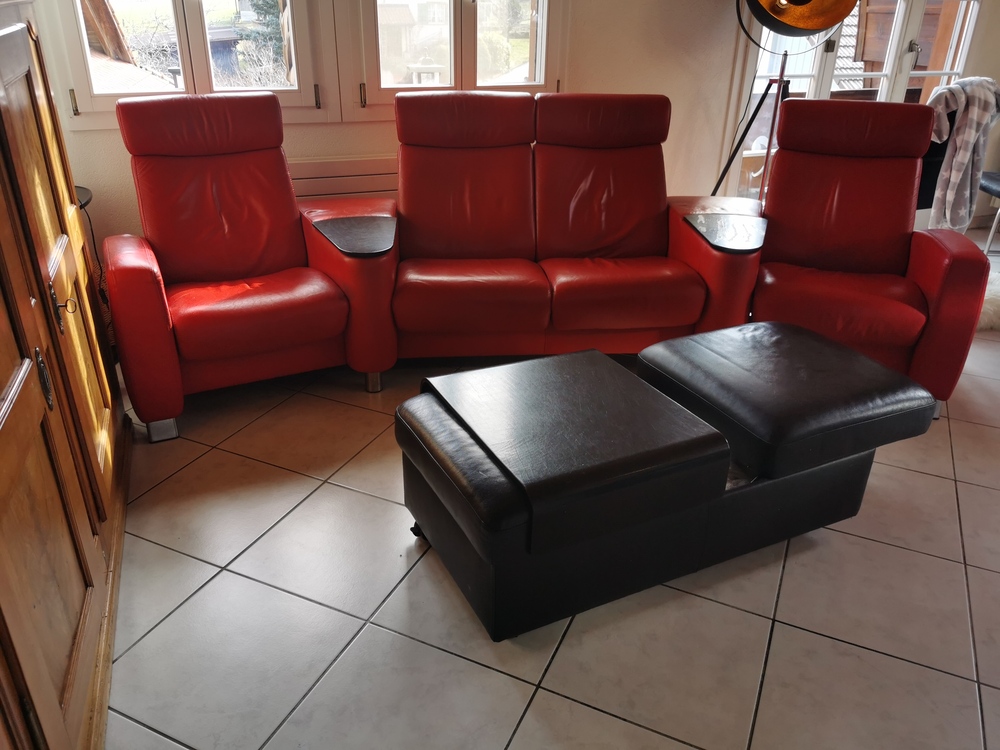 Rotes Stressles Relax-Sofa 4 Sitzer Echtleder