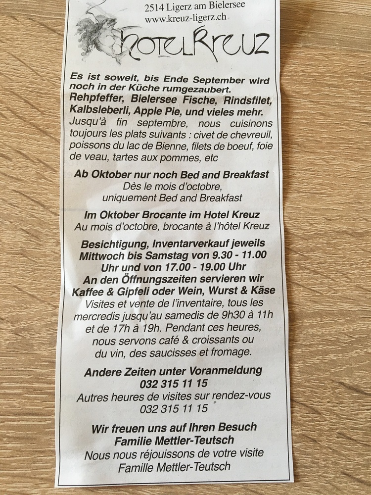 Zu verkaufen Inventar Hotel Kreuz in Ligerz Bielersee