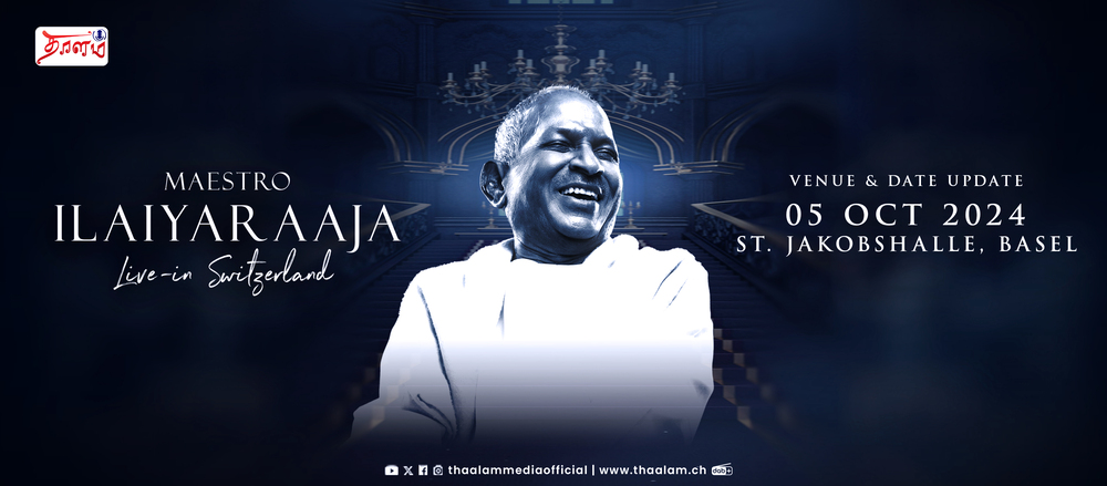 Following their success with the A.R. Rahman concert at Hallenstadion, which attracted over 18,500 fans, Thaalam Media is set to deliver another outstanding event with Ilaiyaraaj’s live msuic event. Through their Concert Broadcast Switzerland, Thaalam Media will extend the reach of this extraordinary performance to audiences globally, showcasing their commitment to delivering exceptional live music experiences.