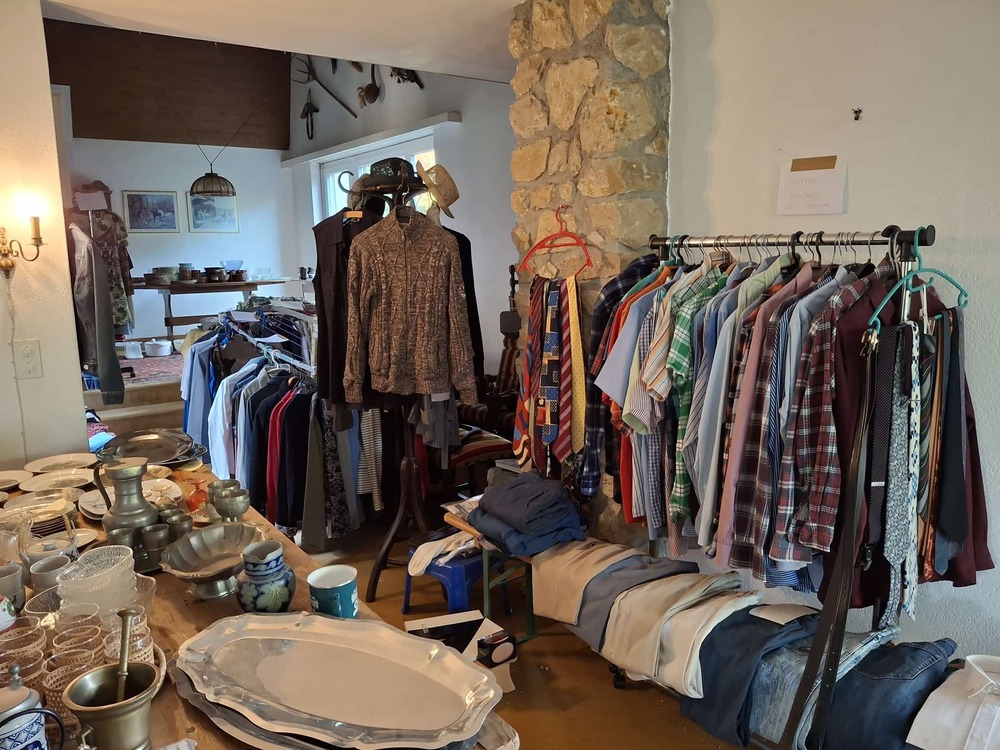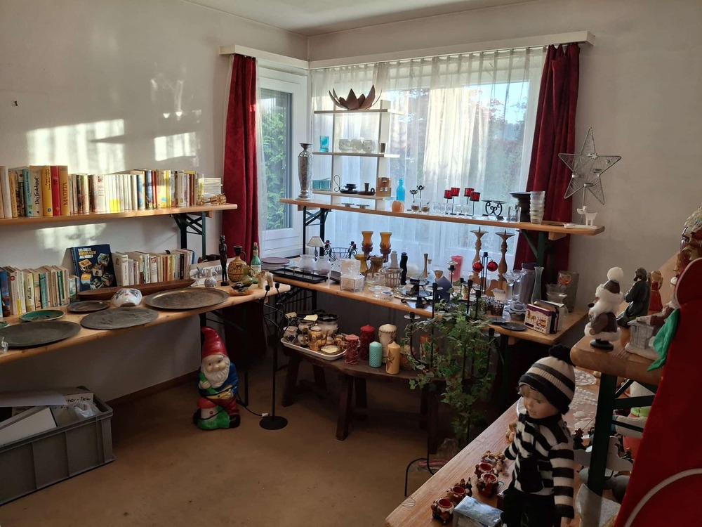 Bilder, Bücher aller Art, Schallplatten und CDs, Dekoartikel, Vasen Kerzenständer, Elektronik, Sehr viele Neue Taschen und Kleider aber auch Secondhand in gutem Zustand, Porzellan, Geschirr und andere Küchenutensilien, Keksdosen, Gartengeräte und vieles mehr..