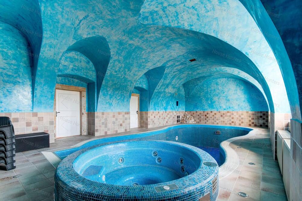 Der Seitenflügel verfügt über ein Erdgeschoss und ein Dachgeschoss, während er im Hauptgebäude durch 2 zusätzliche Ebenen ergänzt wird, das gesamte Gebäude jedoch unterkellert ist. Es verfügt über insgesamt 13 luxuriöse Schlafzimmer mit separaten Eingängen, 2 geräumige Empfangsräume, eine riesige Küche, einen Weinkeller für mehr als 100 Personen und einen schönen Veranstaltungsraum. Der Wellnessbereich umfasst einen Innenpool, ein Dampfbad, eine Sauna, einen Whirlpool und einen Massageraum.