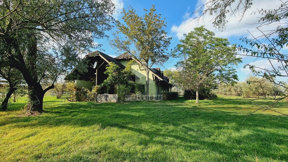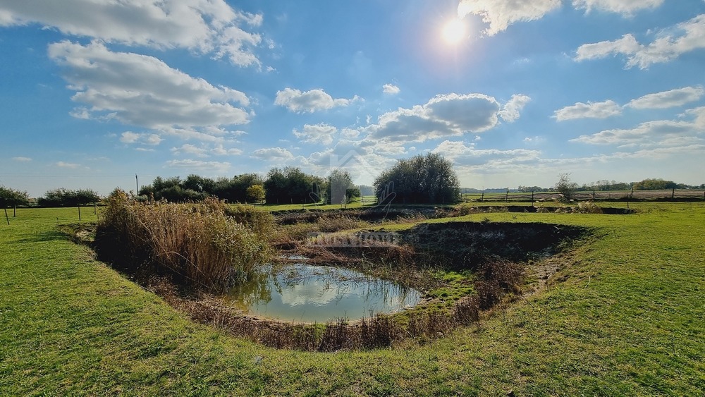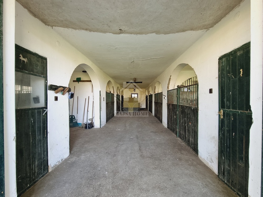 Im Komitat Bács-Kiskun, am Rande von Kiskunmajsa-Ágasegyháza, biete ich ein Gehöft mit insgesamt 14,9 Hektar Land und einem hufeisenförmigen Fischteich zum Verkauf an. Das in den 1990er Jahren errichtete zweigeschossige Wirtschaftsgebäude mit Backstein+Lehmziegelmauerwerk wurde für die Pferdehaltung konzipiert, so dass im Erdgeschoss 7 2-Wagen-Reitboxen, die dazugehörigen Serviceräume und Personalwohnräume entstanden. Das Dachgeschoss befindet sich in einem halb unfertigen Zustand, ursprünglich als Heuschuppen konzipiert, kann aber in zwei Wohnungen mit separaten Eingängen umgewandelt werden. Die Dachkonstruktion ist strukturell intakt und in gutem Zustand, aber die Verkleidung muss renoviert und ersetzt werden.