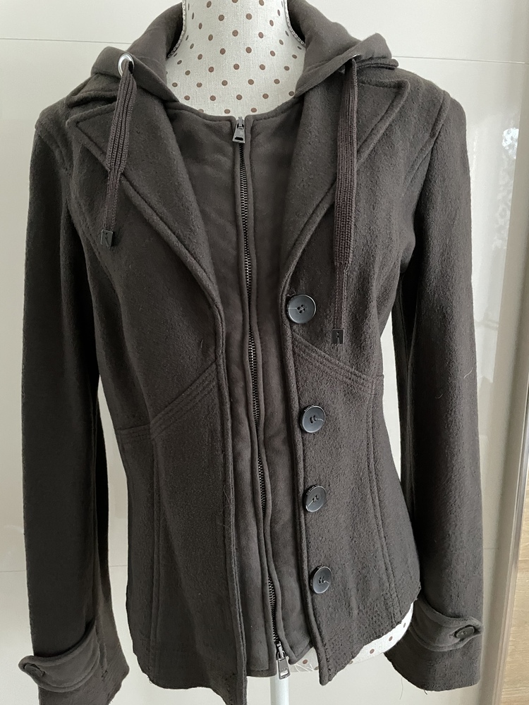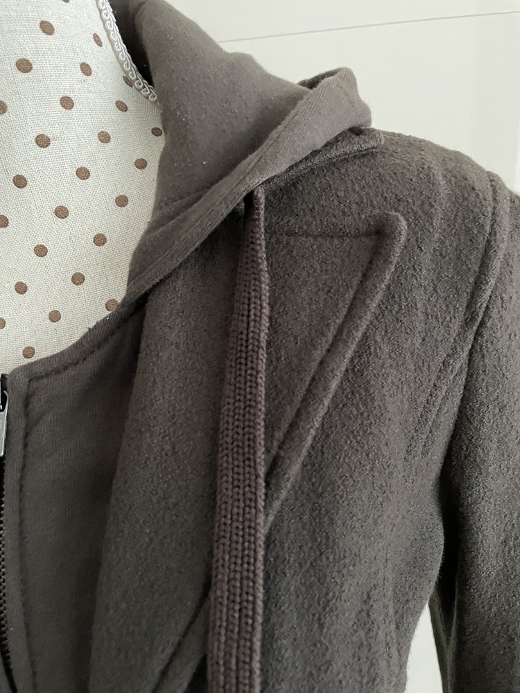 Sportliche Jacke/Blazer aus Schurwolle, Marc Cain Sports, Kapuze und Einsatz aus Sweatstoff, Size 4 (Grösse 38/40)