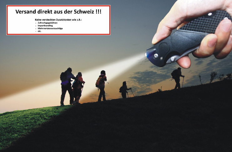 Erlebe das erste Messer mit einer Outdoor-Tauglichkeit wie ein Jeep! Dieses Multi Funktion Messer z.B mit eingebauter LED Taschenlampe von Jeep erweist sich als sehr hilfreich, ob im Alltag oder wenn Sie sich längere Zeit in der Wildnis aufhalten! Dabei ist das Klappmesser mit seinen ca. 180gr besonders leicht und passt durch seine kompakte Form sehr gut in den Rucksack oder an den Gürtel. Dank der mitgelieferten Hülle kann das Messer am Gürtel getragen werden. Details: