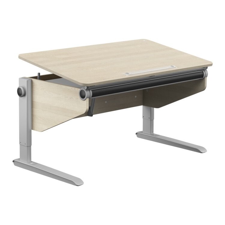 Der Kinder- und Jugendschreibtisch Moll Booster solo ist höhenverstellbar und wächst mit dem Kind mit. Die Neigung der Tischplatte kann stufenlos von gerade bis in verschiednenen Winkeln eingestellt werden. Dadurch wird eine gesunde Körperhaltung ermöglicht.