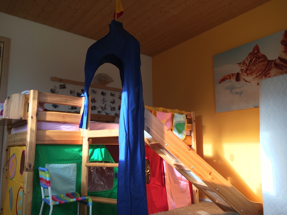 Alles auch demontierbar und als normales Bett (90x200) benutzbar. So wächst das Bett mit dem Kind mit....