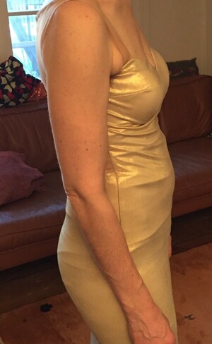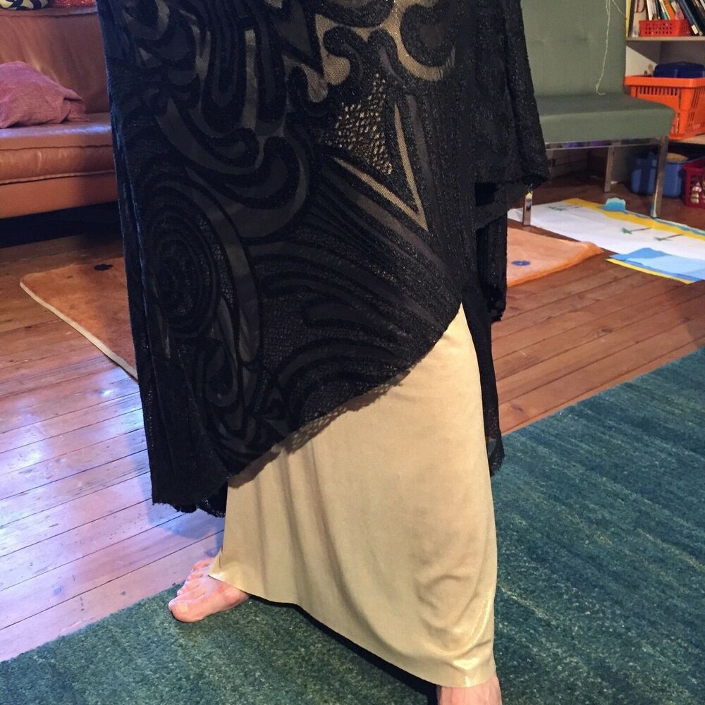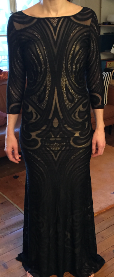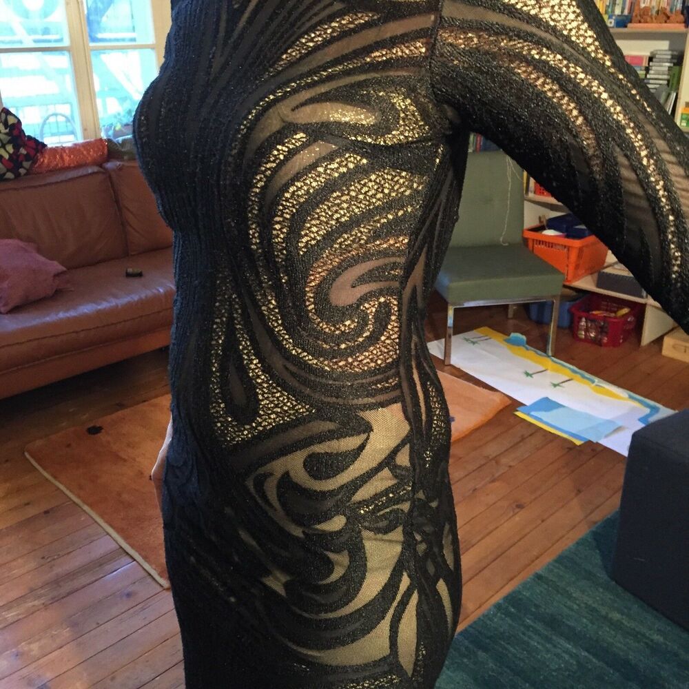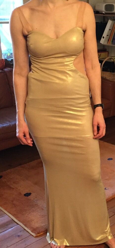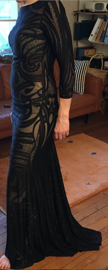 Das Kleid wurde als Konzertkleid gekauft. Der Stil passte aber nicht zum Anlass, darum wurde es noch gar nie getragen. Die Robe ist bodenlang; die Person auf den Fotos ca 1,80m gross. Das Kleid ist nur 700 g leicht.