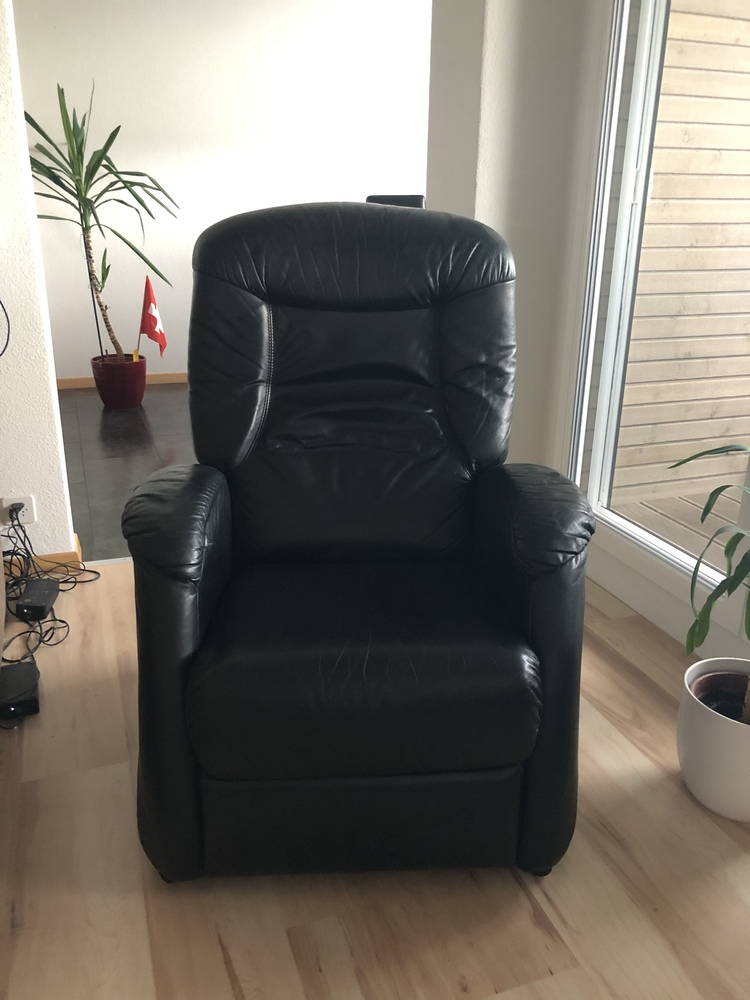 Verkaufe einen gebrauchte Ledersessel auf rollen . Er hat leichte Gebrauchsspuren . Er hat eine liegefunktion .