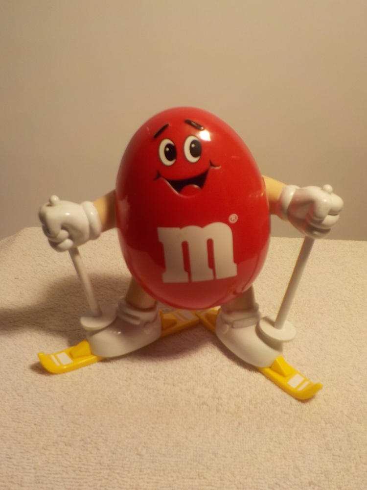Roter M&M Ski-Fahrer mit Drehfunktion / aus dem Jahr 1991 / seltenes Exemplar / interessant für Sammler / ca. 25cm Hoch 17cmBreit und ca.10cm Tief / gut erhalten