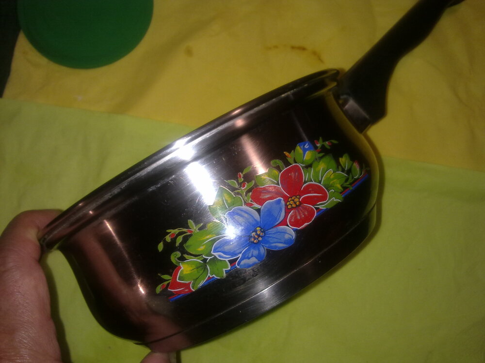 Sehr robuste Pfanne, mit Blumenmuster