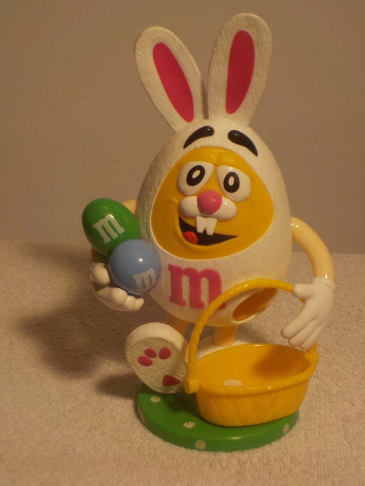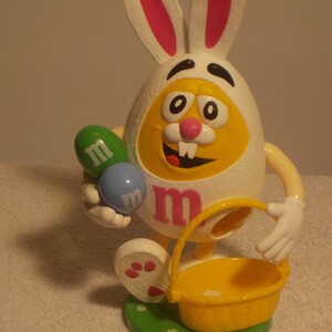 32cm grosser M&M Osterhase -Spender / mehrfarbig / aus Kunststoff Hergestellt / Made in Philippines / am Rücken füllen und die Ohren zusammen drücken und schon rollen die M&M Kügelchen in den Korb