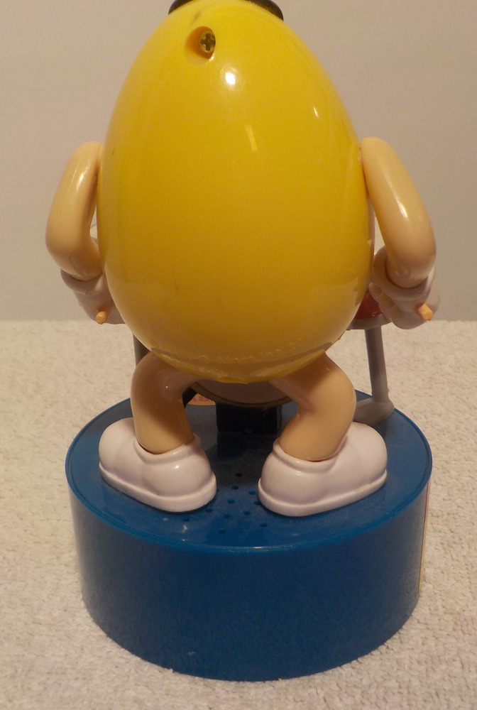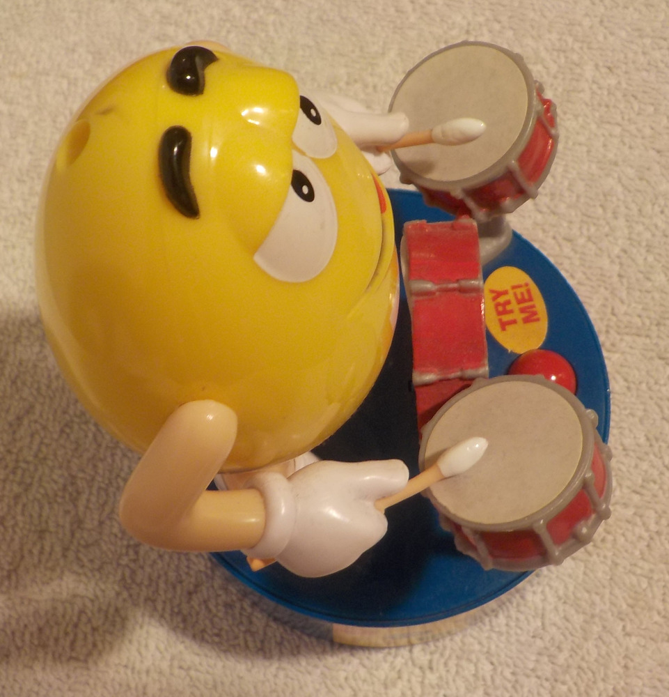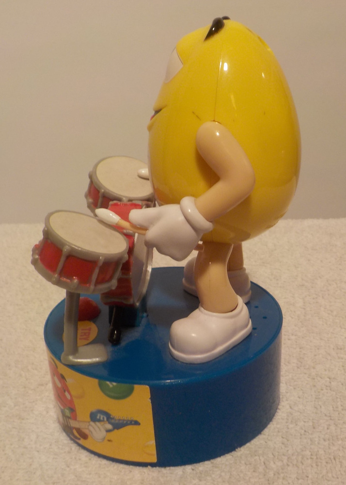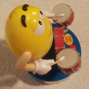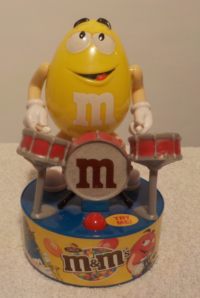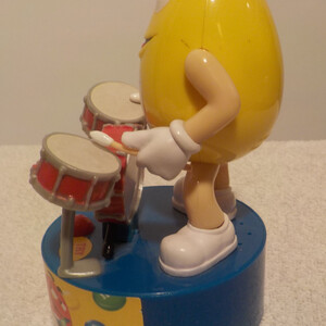 Gut erhaltener M&M Schlagzeuger / Elektronik von M&M ( Batterie betrieben ) Material Kunststoff / ca. von 2015 / Masse: Sockeldurchmesser 8cm Höhe ca.13.5cm / Durch drücken des roten Knopfes setzen sich die Arme mit Schlagstöcken in Bewegung und gleichzeitig ertönt eine Melodie. / Es werden 2 x AAA Batterien benötigt Dieser Artikel ist nicht für Kinder unter 3 Jahren geeignet.